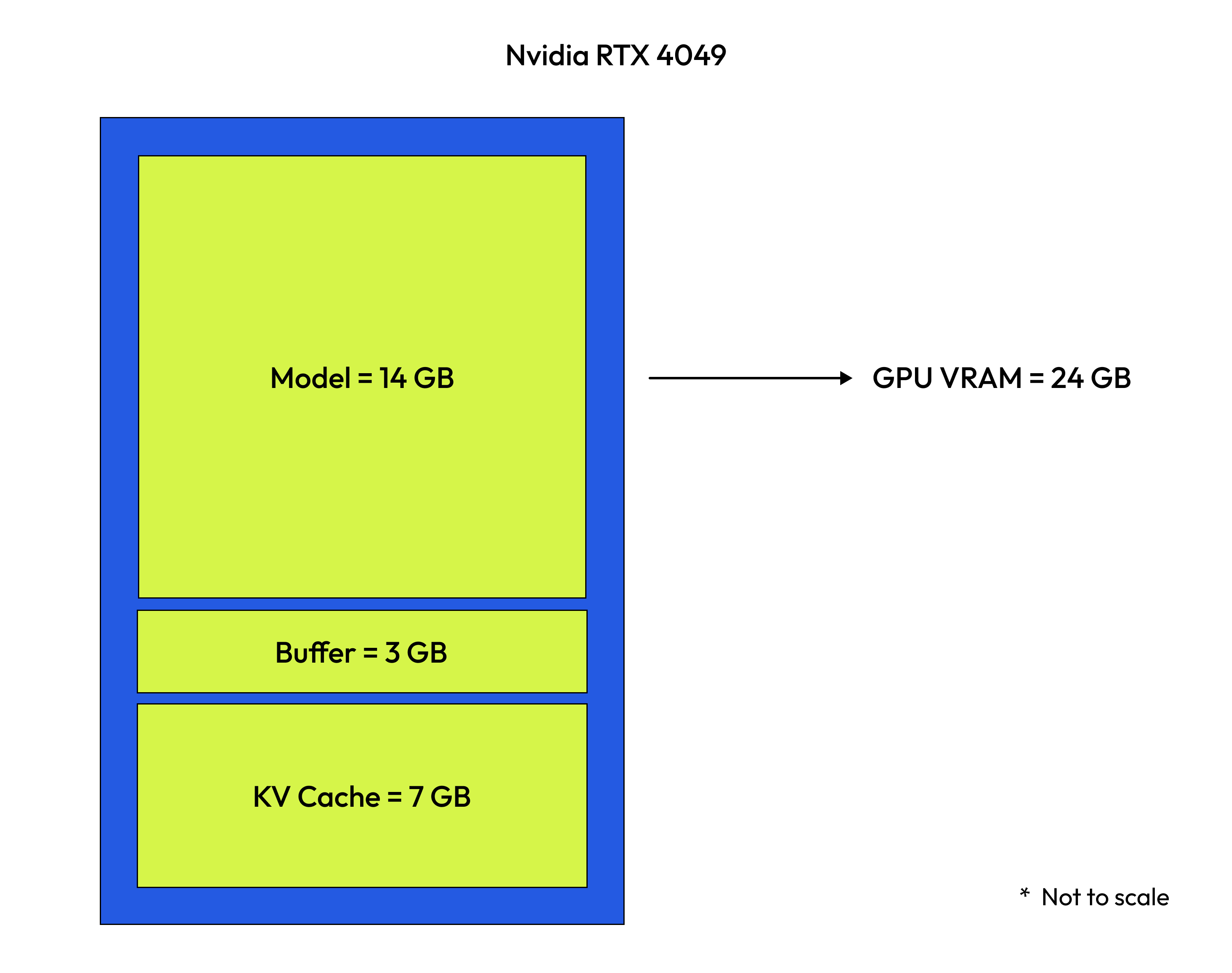 Example: A 7B parameter model in FP16 precision requires approximately 14GB just for the model weights, not including the KV cache or activations.